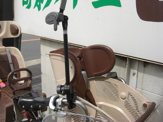 さすべえ♪ ぷらいべ~と 2011年07月02日 0 毎日、毎日、本当に暑いですね~ (≧≦;) 夏って、こんなに暑いもんでしたっけ?! 直射日光ガンガンの中の、自転車での保育園の送り迎え・・・ 前に12kg、後ろに15kgのチビーズを乗せて、 10kgの電動自転車を、 日傘を差しながら片手運転はムリ!(道路交通法違反だし・・・)。 なので、ついにあの『さすべえ』を装着することにしました!!! 『さすべえ』といえば、今や“大阪のおばちゃん”のマストアイテムと言われております。 自転車のハンドルにとりつけると、手を使わずに傘をさせるという、ものすごい画期的な商品!! さっそく自転車やさんに聞いてみると、 「子供乗せ用の自転車には付けない方がいいですよ・・・ 普通のさすべえと違って、左右どちらかのハンドルにつけるタイプだから、 不安定だし、風が吹くとハンドルとられるし、危ないからね~」 と助言をいただきました。 でも、でも。。。暑いんです! 日焼けするんです! もう限界なんでずーー(ToT) 朝から夕方まで悩んだあげく、 ●風のある日は使わない ●子供を乗せた状態ではなるべく使わない ということで、自転車やさんの反対を押し切り、付けてしまいました (^^;) さすべえの取り付けを検討しはじめてから、街中の自転車を見てみると、 ほとんど自転車にさすべえがついてるじゃありませんかっ!!! さすべえの売上の半分以上は大阪だと、以前テレビで見たことあるけど、 ここまでの普及率とはっ!!!! すごいぞ、大阪☆☆☆ これで私も、“大阪マダム”になれるかしら♪♪